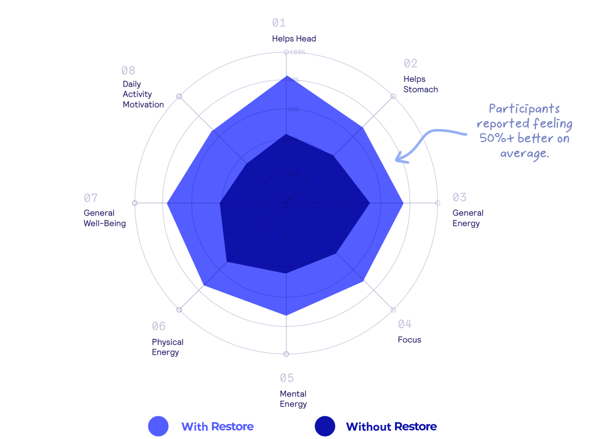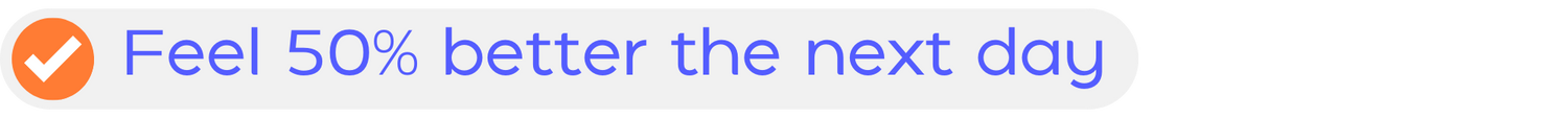 In a human study conducted for our granted patent, users of NextDay Cheers felt an average of 50%+ better the next day across 8 typical effects. These results give us confidence that you’ll wake up feeling at least 50% better — or your money back.