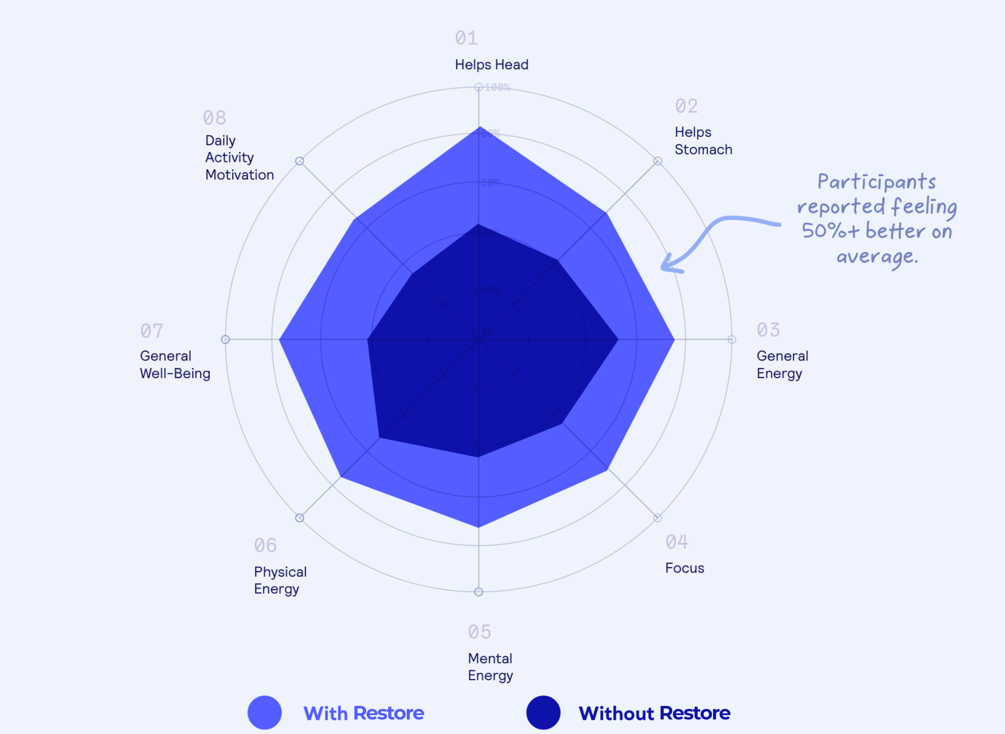 Restore touts a patented formula of dihydromyricetin (DHM) + cysteine, along with essential vitamins and liver-supporting nutrients.